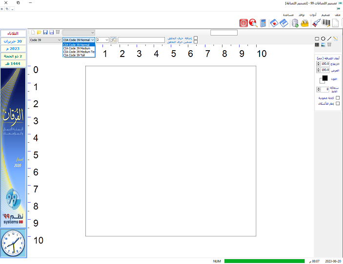 يتمتع برنامج الفرقان لتصميم ملصقات الباركود بالمواصفات التالية: