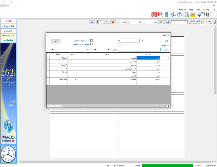 يتمتع برنامج الفرقان لتصميم ملصقات الباركود بالمواصفات التالية:
